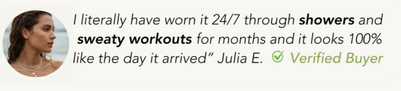 Our jewelry is 100% waterproof so you can do your daily routine without having to take it off! You can wear your jewelry in the shower, in the pool, to the gym, and at the beach, they will never tarnish! ✨