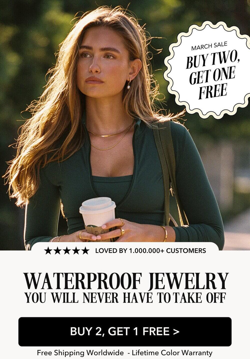 At Riyova Jewelry, we proudly offer 100% waterproof, tarnish-free jewelry made for everyday wear. Every piece is backed by our Lifetime Color Warranty—if your jewelry ever fades, you’ll get a free one-time replacement.
